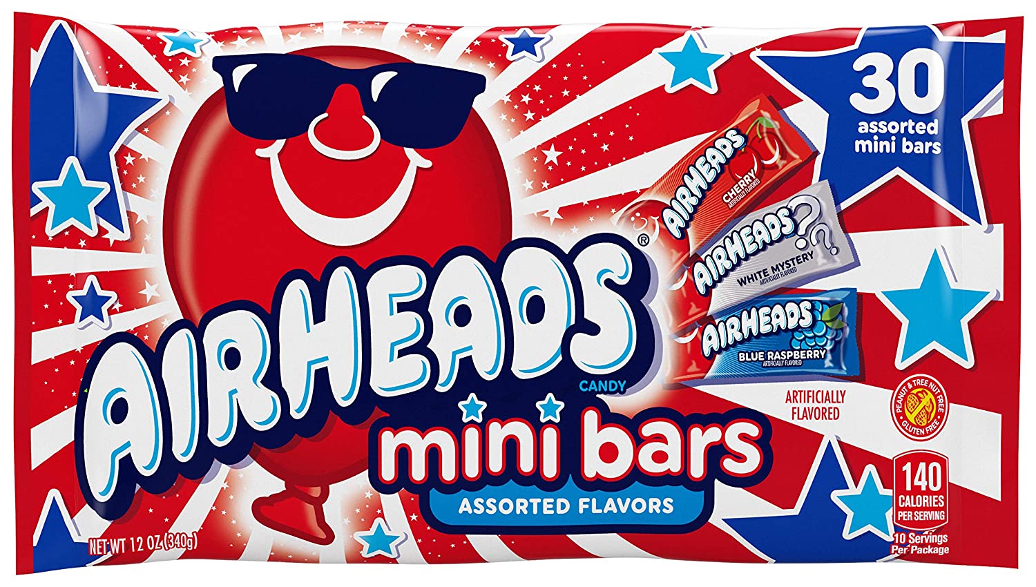 Airheads Minis Assorted Flavors Bag Red White And Blue Summer Special Edition Cherry White Mystery And Blue Raspberry 30 Count Walmart Com